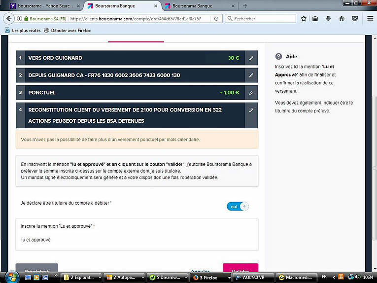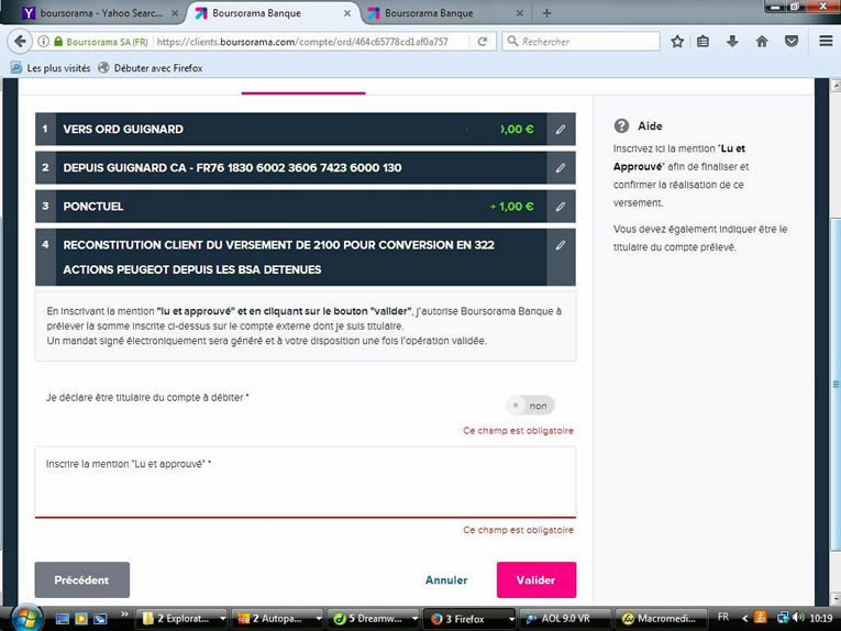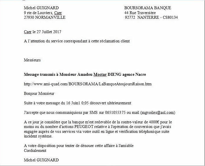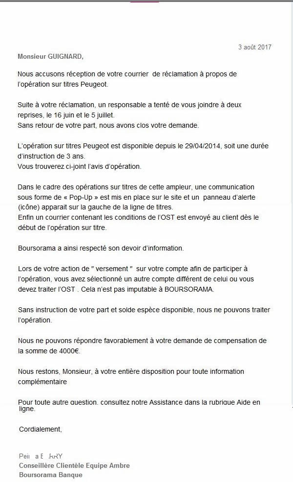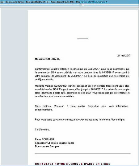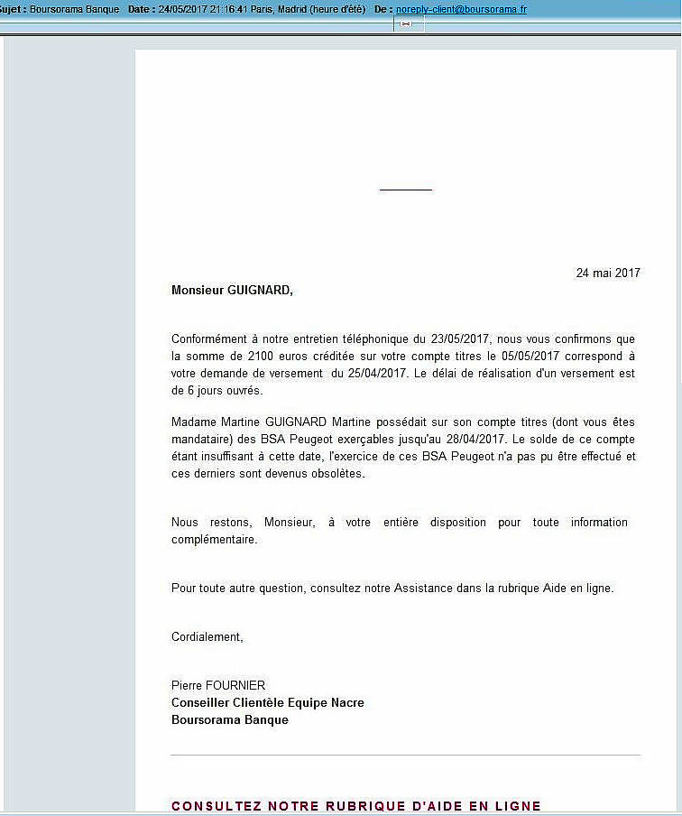 avec Boursorama pour préciser mes intentions rapport à Peugeot,