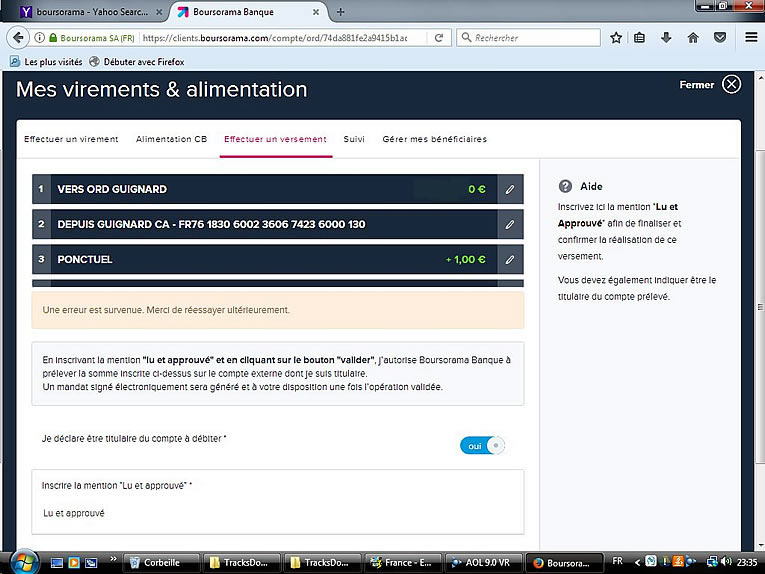 Ainsi, plusieurs virements externes ont subli le même sort mais sans