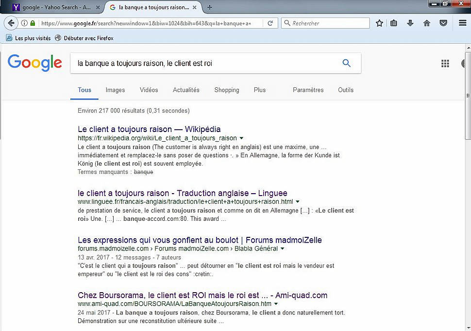 Quelques longues ... minutes plus tard, la sentence : "Le client est
