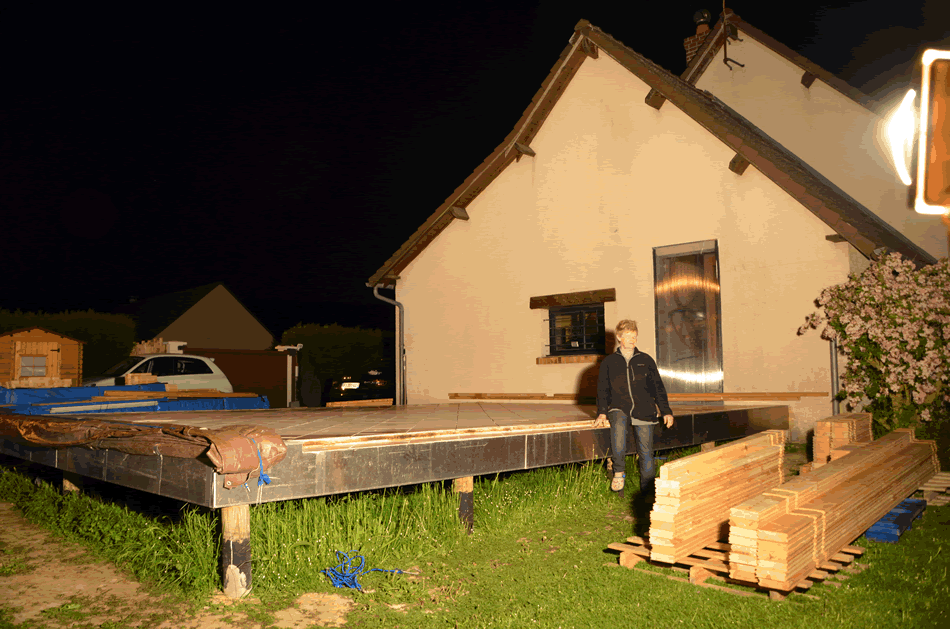 Même le soir tard, au projecteur de chantier - La cerise sur le gâteau,