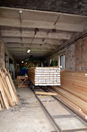le convoyage du bois attendu sur les bancs de scies, un rail et un wagonnet font l'affaire