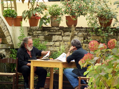 disons plus économique.![]() Nous sommes invités à goûter aux spécialités locales à l'occasion d'une soirée apéritive quasi traditionnelle à Paléochora Rien de tel pour s'imprégner de l'ambiance générale d'une petite ville aux contours trés accessibles, chaleureuse, simple, toute remplie de visages gais et détendus. Allez on vous l'avoue, après ces derniers jours écoulés, nous sommes convaincus d'être arrivés dans un petit paradis ... |