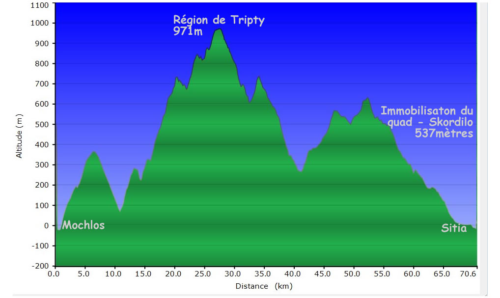 dénivelé réalisé en Quad 60 km/h maxi dans les descentes 23 maxi dans les côtes en poussant sur le guidon ... En courte selon lincurvation des virages |
