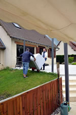 | A gauche, la terrasse reste à recevoir un carrelage identique