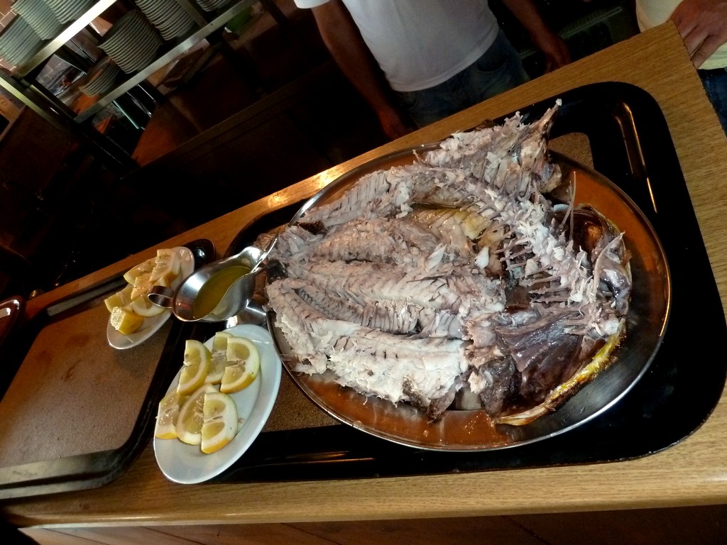 Puis Un seul plat plutôt poissons (daurade, anchois grillés, l'octopus