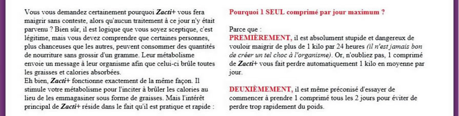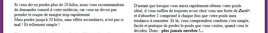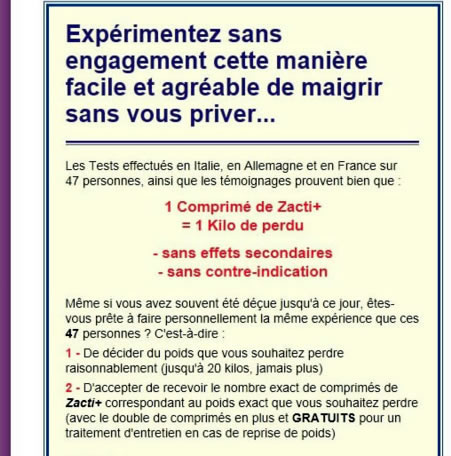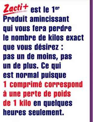 4 comprimés. de Zacti+ pour perdre 4 Kilos
