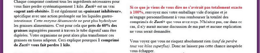 Pour les kg en moins, faudra se faire une raison, ça marche selon certains témoignages (réels ?)