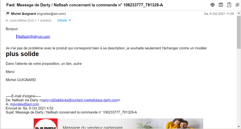 Pourriez-vous me transmettre votre adresse mail s'il vous plait ?