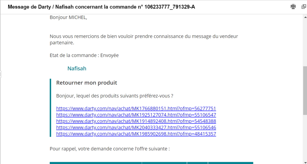 Lequel m'a proposé ce qui suit sans même être tenu de renvoyer