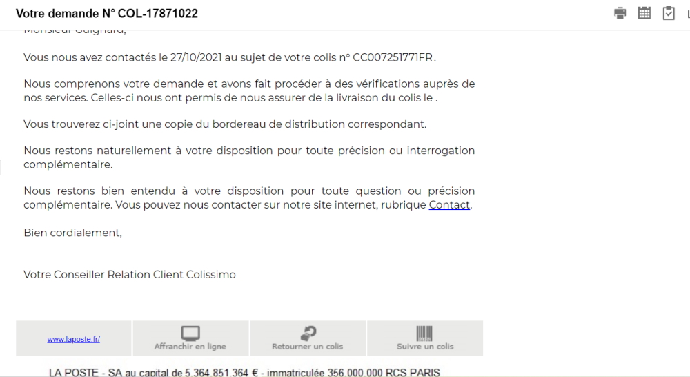 Heureusement que le colis a bien été livré,
