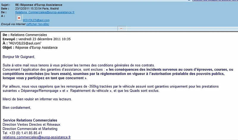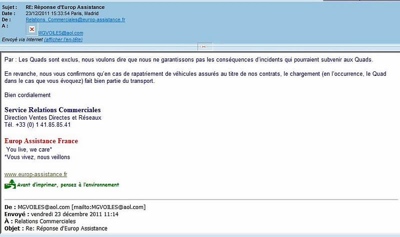 Nous avons opté pour Europ-Assitance : Nous expliquerons plus loin