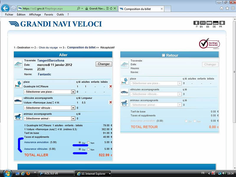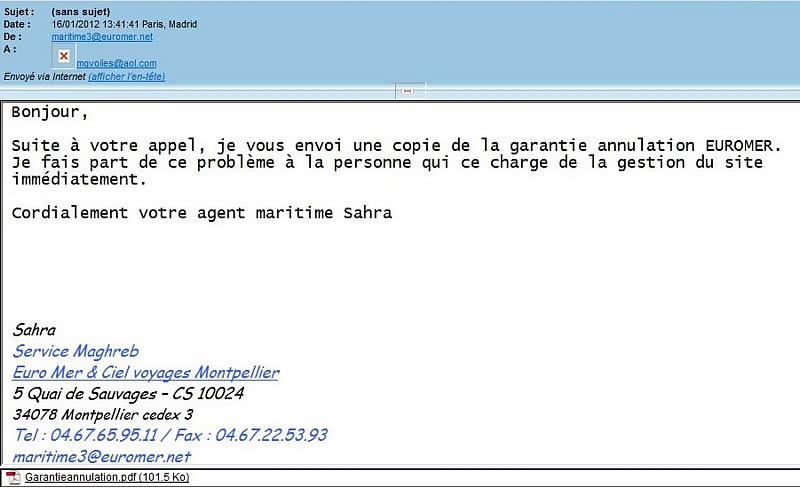 | Ci-dessous, visu assurance annulation GNV via EUROMER | |