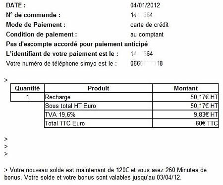 seulement, 20€ / 0.45 la mn = 44mn de conversation par recharge !