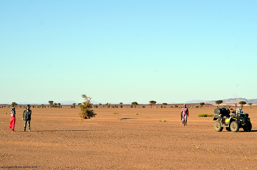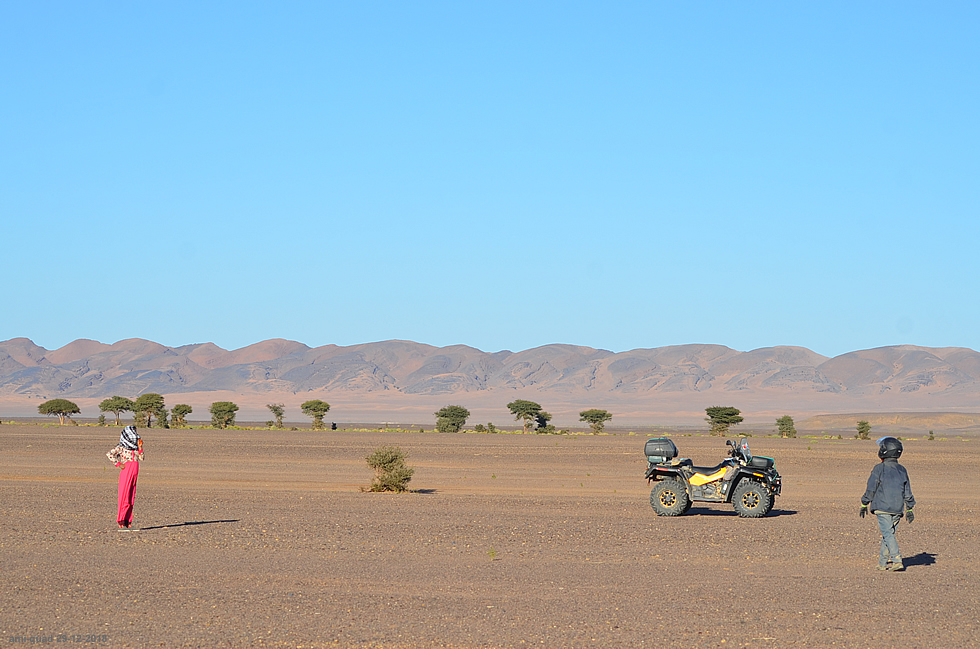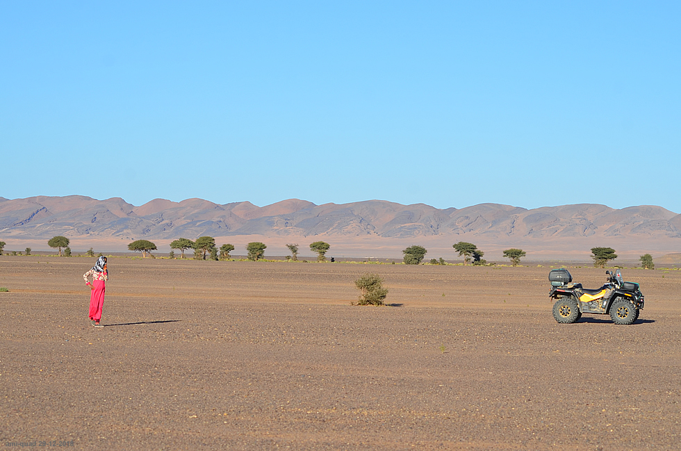 Chemin faisant, quad et quadéros en pause, arrive une jeune fille d'on ne sait où, la quadérose rejoint la jeune fille, commence la discussion