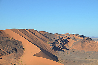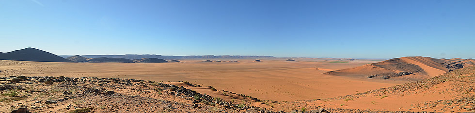 Se profilent à chaque moment, de nouvelles vues toutes aussi variées les unes que les autres jusqu'à ce que, au loin les dunes de Merzouga nous apparaissent
