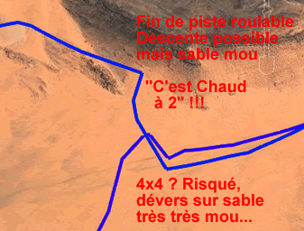 A Ramlia, nous obtenons de bons conseils pour éviter l'Oued, vous savez, ces sables mous rencontrés à l'aller...