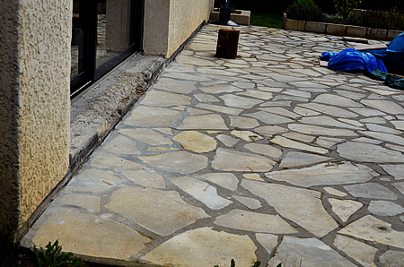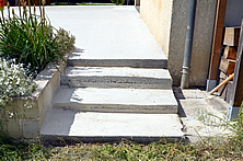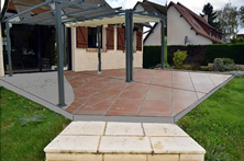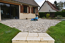 La terrasse reprise et réussie avec excellence par le carreleur de l'entreprise Egasse à Caillouet Orgeville