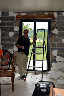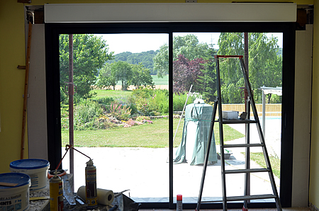 ![]() Baie coulissante posée avec son coffre, re-isolation latérale |