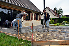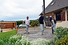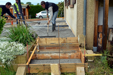 Historique: Le Vendredi 16 Mai, le commercial de la Sté Egasse souhaite prendre de l'avance et faire préparer le coffrage du chantier en mon absence déclarée de quelques jours. Fort de nos derniers échanges, je donne mon accord et lui confie un jeu de clés. Le Lundi matin, je signale au commercial une anomalie de coffrage au droit d'un escalier souhaité sur une simple pente existante, celui-ci n'avait pas encore constaté les travaux réalisés. Il manque une marche ! Le Mardi 20 Mai fin de matinée, l'entreprise sous-traitée sans accord préalable, Lecocq à Nogent-Le-Sec, publicité inscrite sur le camion, intervient pour modifier le nombre de marches insuffisant d'un escalier alors en simple forme de pente - Les ouvriers disent travailler régulièrement pour la Société Eg... et qu'il n'y a jamais de problème. Le Mardi 14:00, la toupie vient livrer le béton Le Mardi dans l'apm, après le départ de tous, le client constate et entreprend de corriger un défaut apparent au niveau des marches de l'escalier créé, partant du bas : 1ère marche haute de quelque 25cm, seconde marche haute de 7cm, 3ème marche trop basse également, la 4ème marche étant l'accès à la terrasse. Je reprends 5 cm de béton à la truelle sur la 1ère marche pour le déposer sur la 3ème marche, de façon à équilibrer quelque peu les hauteurs, au pif étant gêné par le coffrage, le tout sous une pluie constante, en appui et à genou sur une planche de récupération, avec l'inconfort lié à ma prothèse fémorale. Le commercial dira le jour de l'encaissement que "les