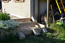 ![]() C'était l'hiver, c'était beau, cette porte-fenêtre n'avait plus sa place ici, 1.20m de large, à peine 0.60 de passage avec un panneau fermé, une barre de seuil trop haute, idéale pour se prendre les pieds dedans, la terrasse par ailleurs trés abimée et môche, ça énerve, ça énerve ! Nous avons décidé de casser, remplacer, rénover, recharger, prévoir les pièges, faire face, à moindre frais si possible - Nous l'avons fait. |