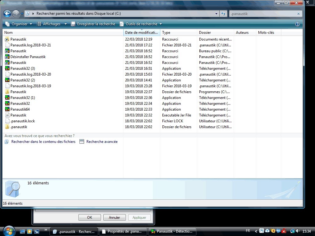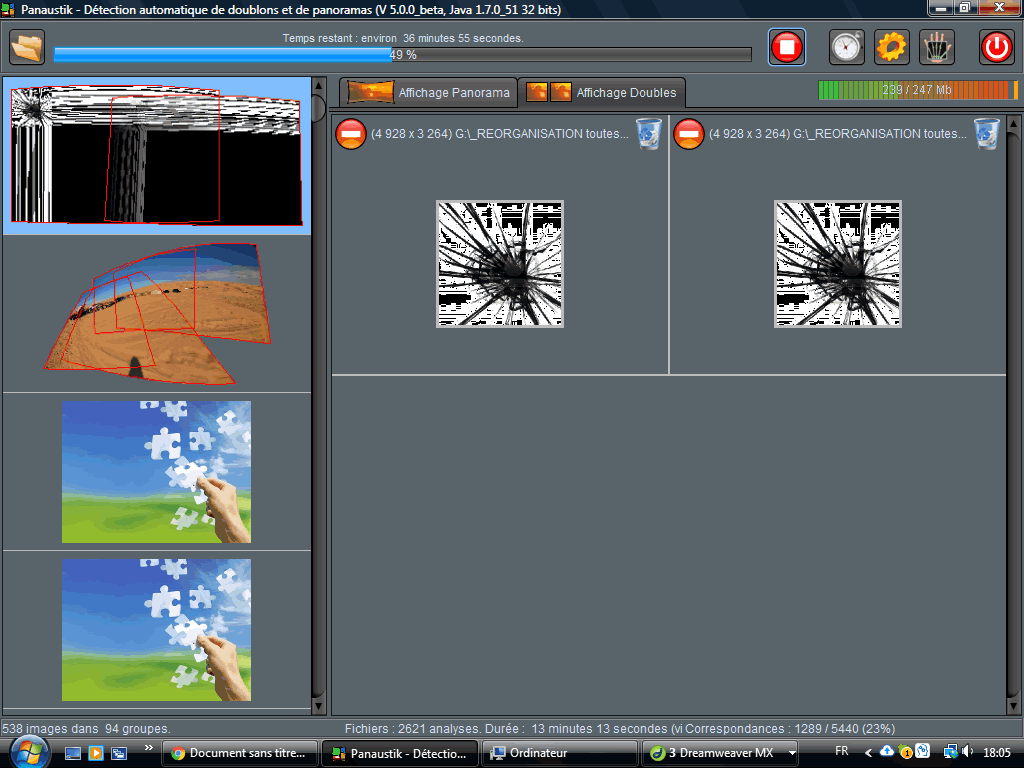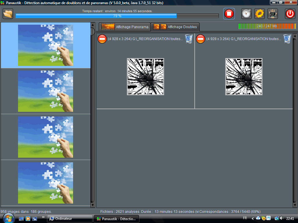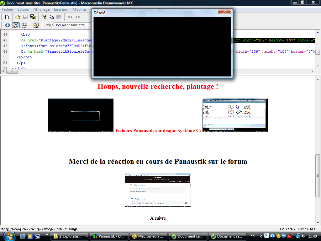 Copies d'écran en situation dite anormale, sur une autre analyse en cours