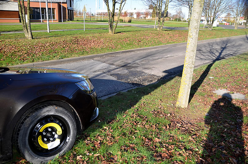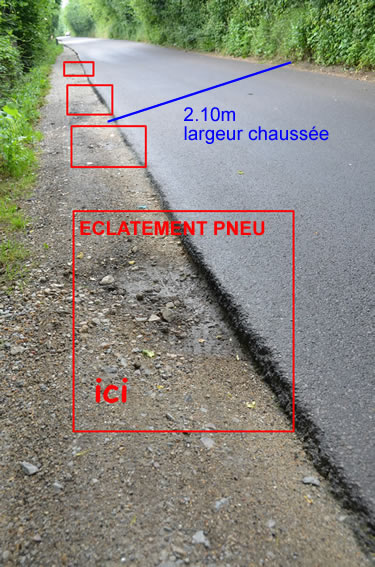 Chaussée surélevée Un pneu éclaté au croisement de deux véhicules lors du débord obligé de l'un des véhicules sur l'accotement, le mien. |