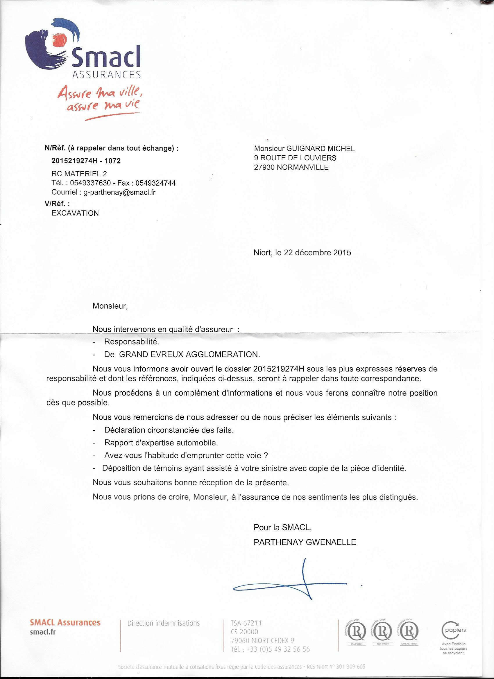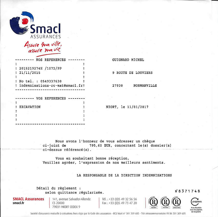que la SMACL accepterait à 50/50 le litige N°2 (on en reparle