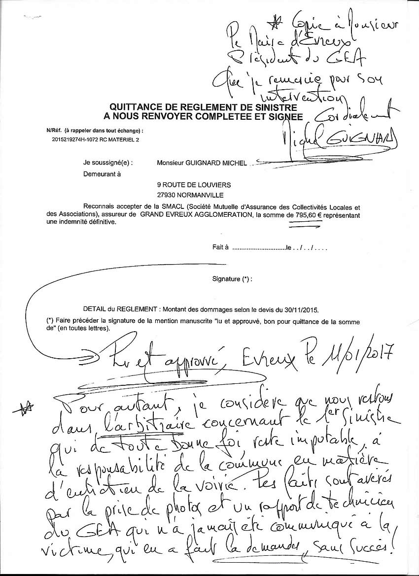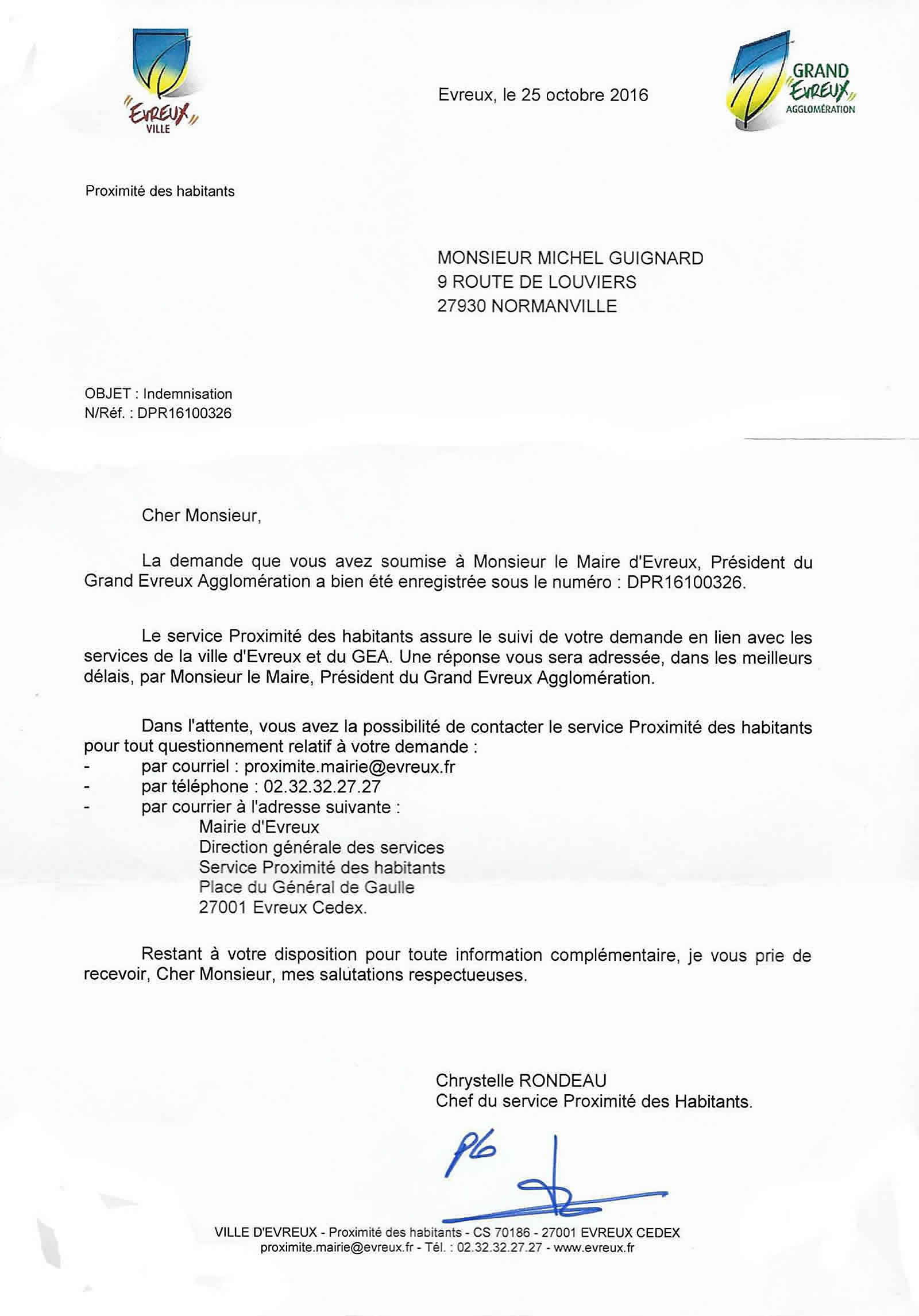Lettre à Monsieur le maire d'Evreux et Président du GEA d'Evreux