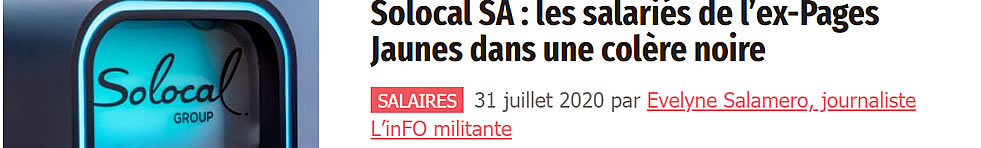 | 09/07/2020 | Eric Klipfel rejoint Solocal en qualité de Directeur Général adjoint en charge des activités commerciales et des opérations clients. | 10/07/2020 | Merci Michel pour vos encouragements (EB) |