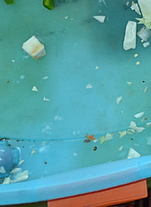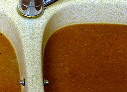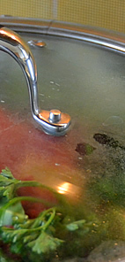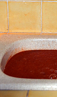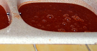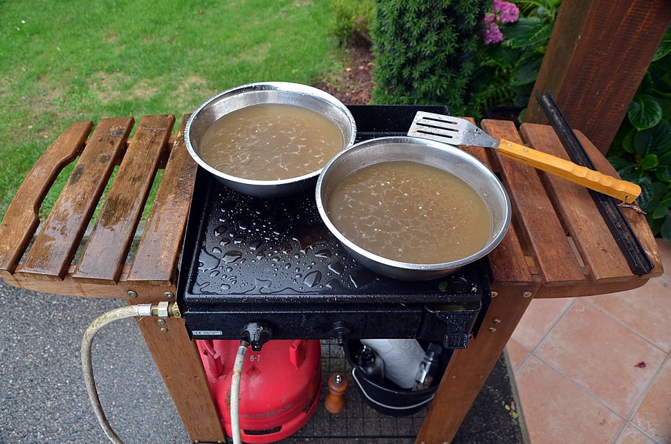 Etape 6 - Mise en refroidissement après mixage dans les gamelles, dans l'évier qui est naturellement nettoyé avant...