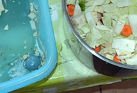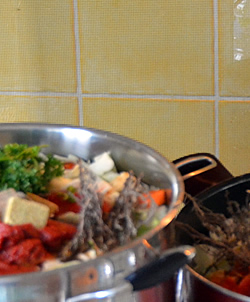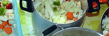 Etape 2 - Les légumes coupés sont mis dans leur pots de cuisson