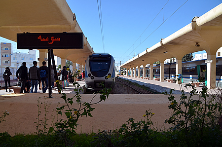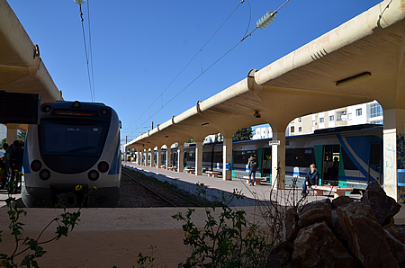 La gare terminus du retour vers Monastir et Sousse, le dessin des sièges
