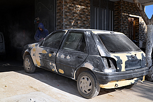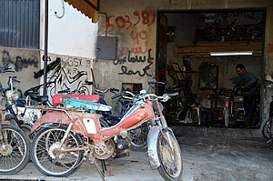 à sa base, son quad kapout est abandonné dans l'oliveraie locale