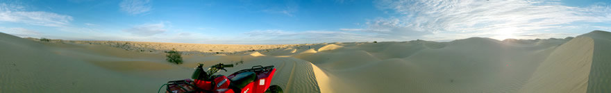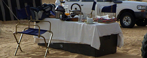 Au sein du sable, la table, le quad, le petit déjeuner, les ronds dans les dunes, le réveillon à Tozeur