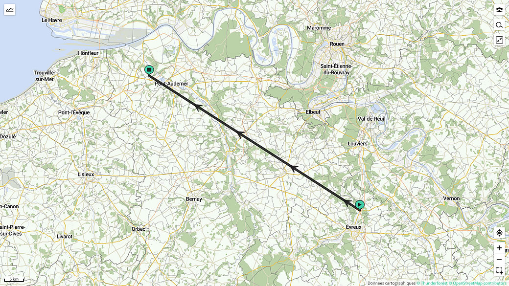 La trace à vol d'oiseau du point A au point B est ensuite traitée